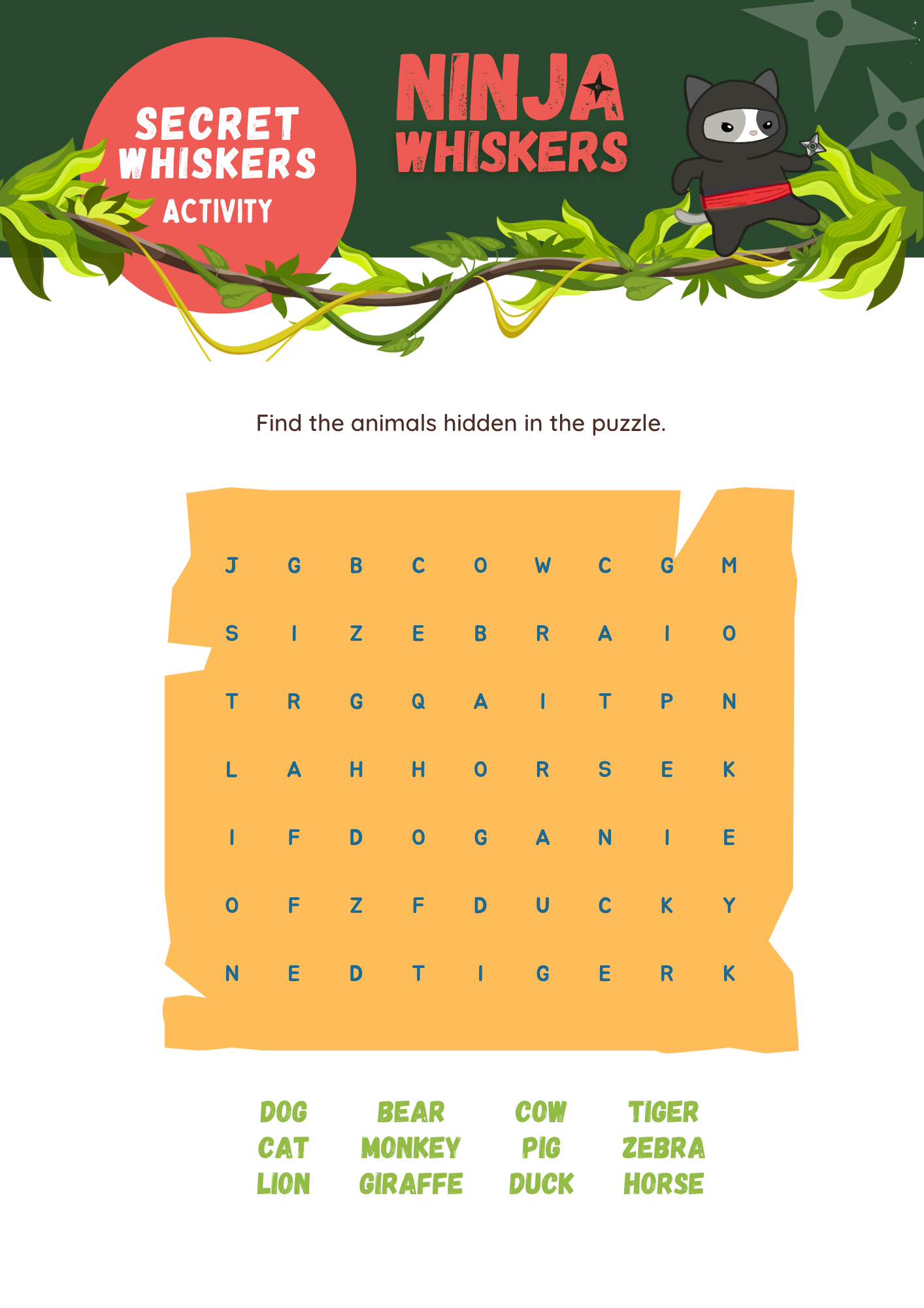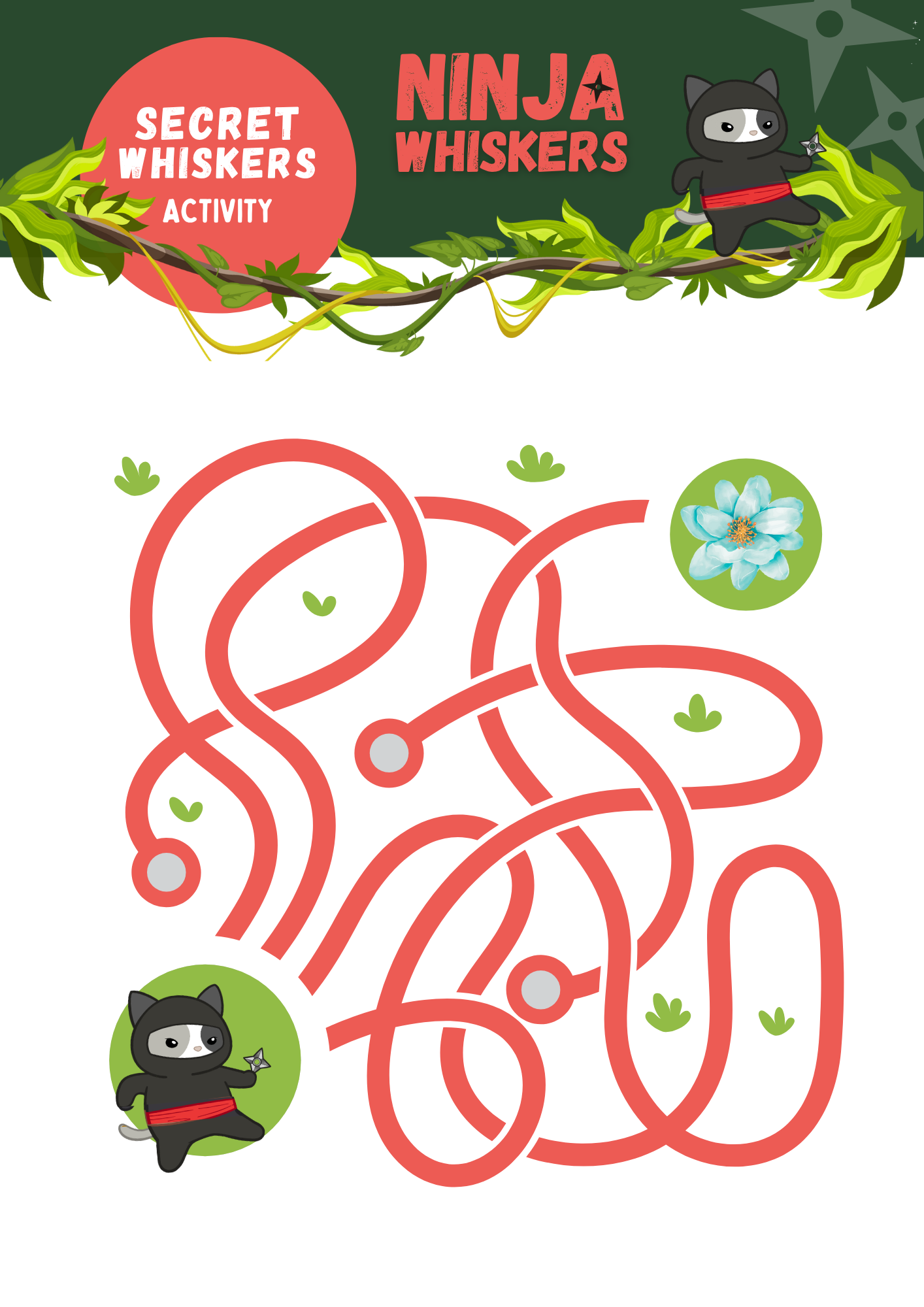 Unleash the fun with the Secret Whiskers Activity Pack, a bundle of stealthy adventures and creative challenges inspired by Ninja Whiskers! Packed with puzzles, coloring pages, code-breaking games and plant-protecting missions, kids can join Ninja Whiskers and her quirky allies as they outsmart mischievous foes and keep the Sky Garden safe.