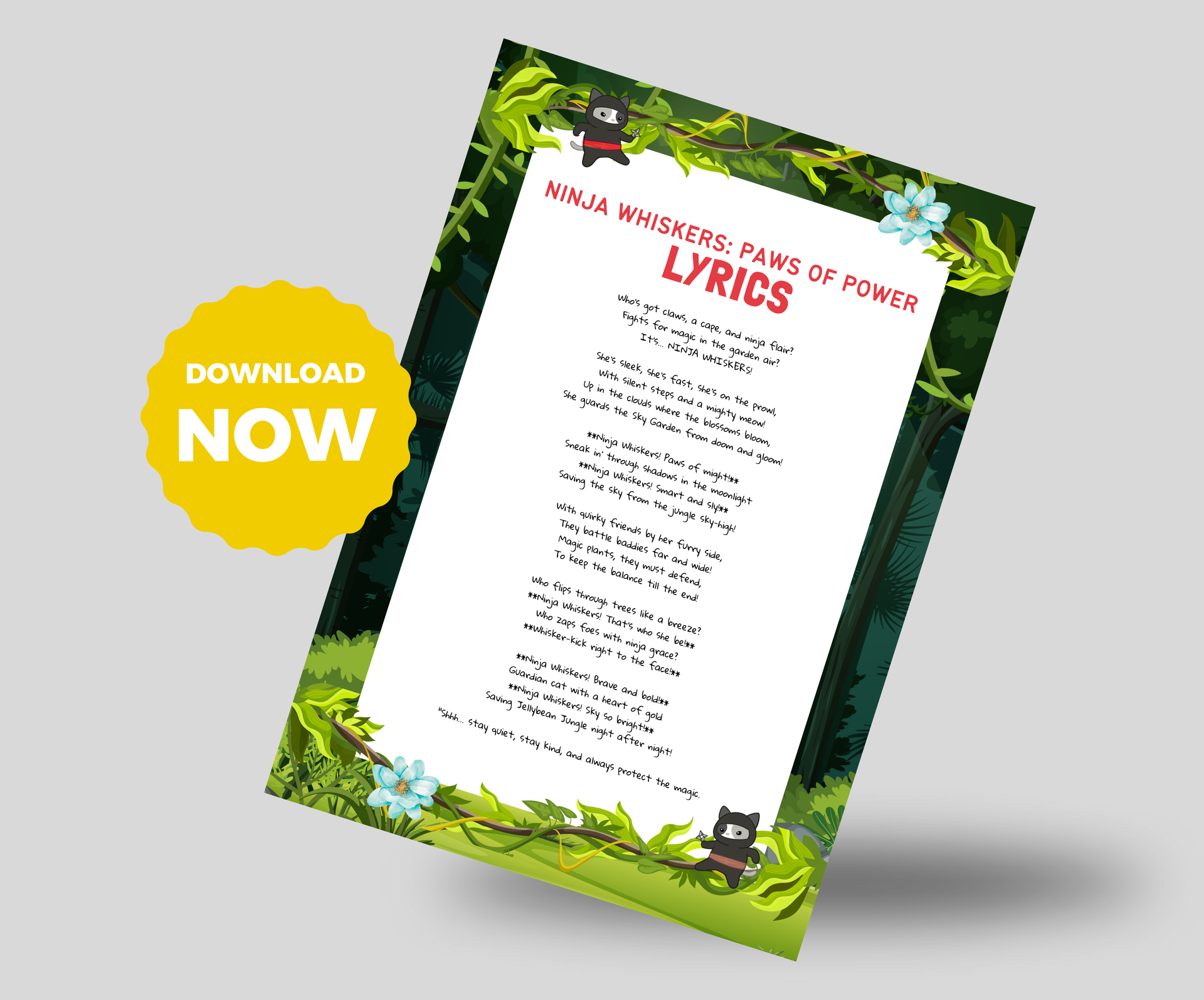 Dive into the world of adventure with the Ninja Whiskers Theme Tune! Bursting with playful beats and sneaky rhythms, this catchy tune brings Ninja Whiskers’ daring missions above the Sky Garden to life. As you listen, you can imagine her leaping through the clouds, outsmarting mischievous foes, and working alongside her quirky allies to protect magical plants.