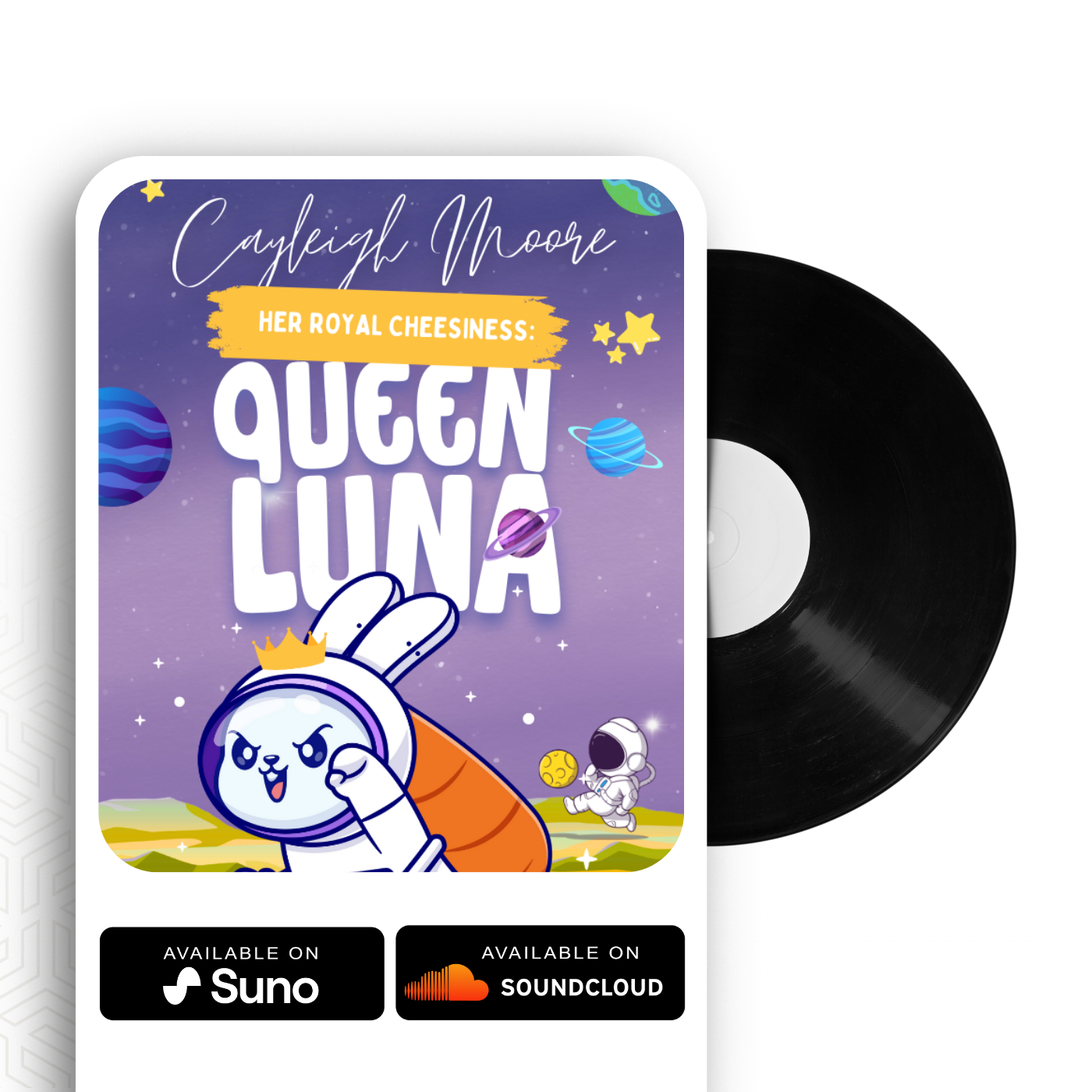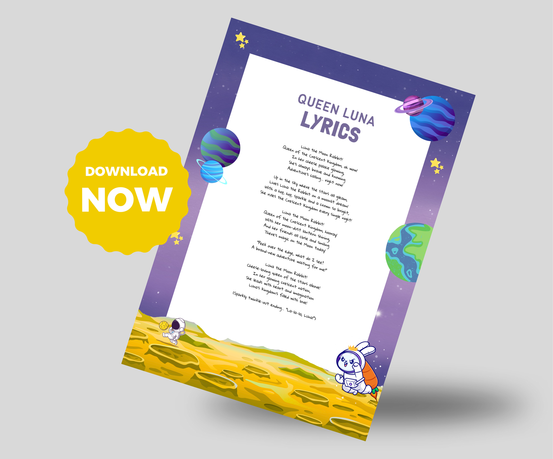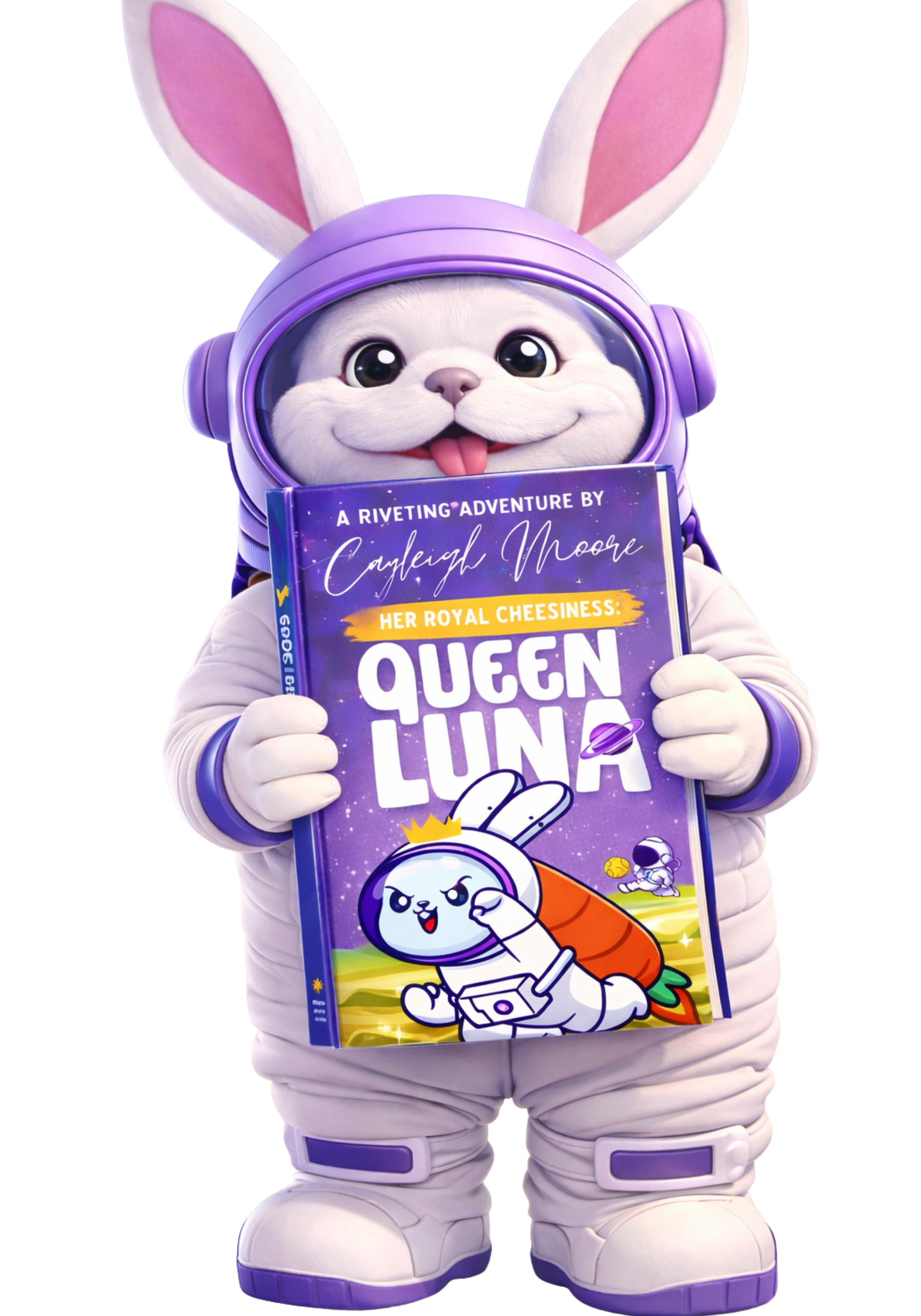Far above Earth, on a glowing Moon, Luna the Rabbit, cheerful and curious, rules the Crescent Kingdom from her magical Moon Cheese palace.