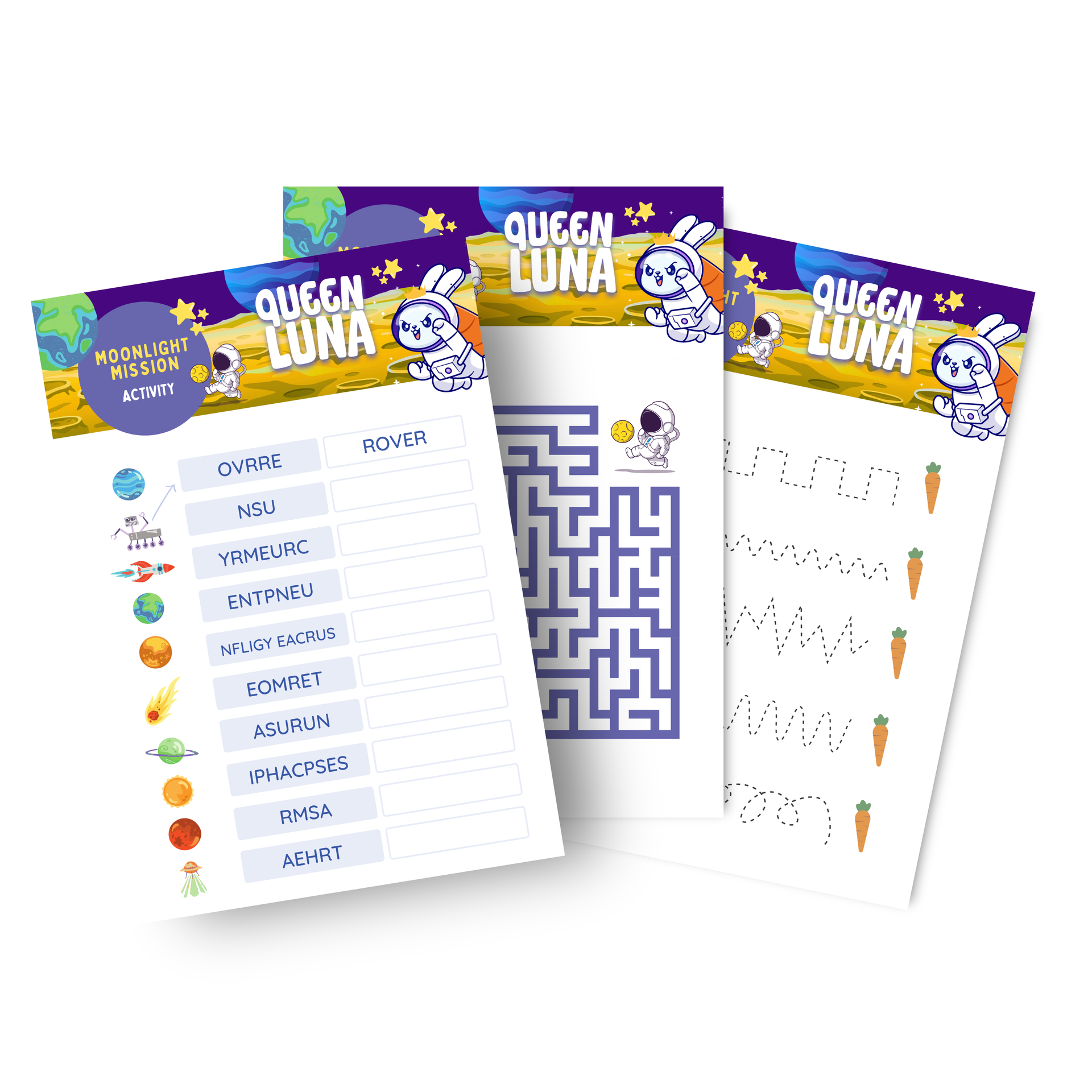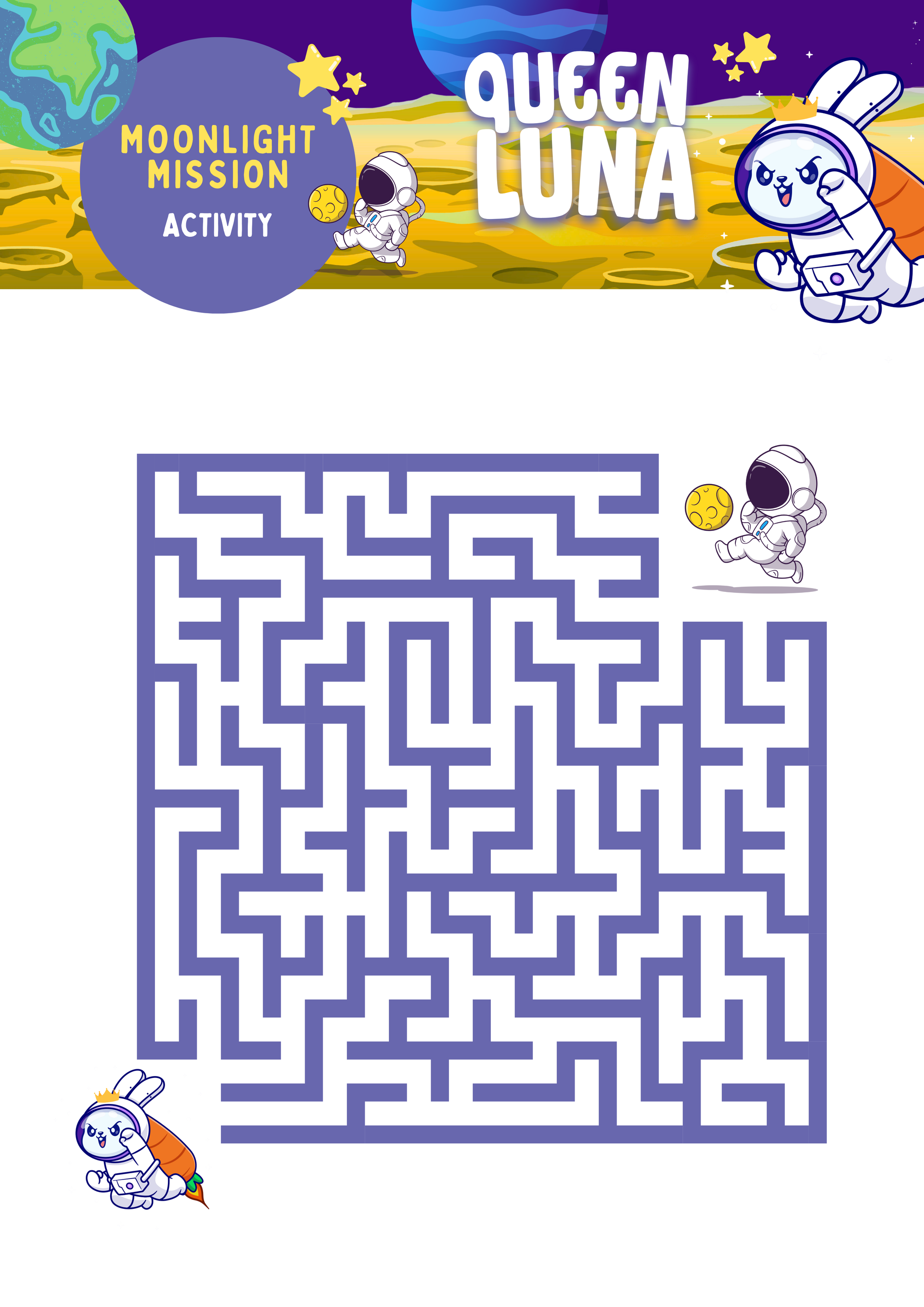 Inspired by Queen Luna’s magical journey, this enchanting activity pack is filled with colouring pages, puzzles, games and creative challenges that invite children to join Luna on her brave moonlit mission. From designing their own royal moon kingdom to solving starlit challenges alongside Luna, every activity sparks imagination, builds problem-solving skills, and encourages confidence.